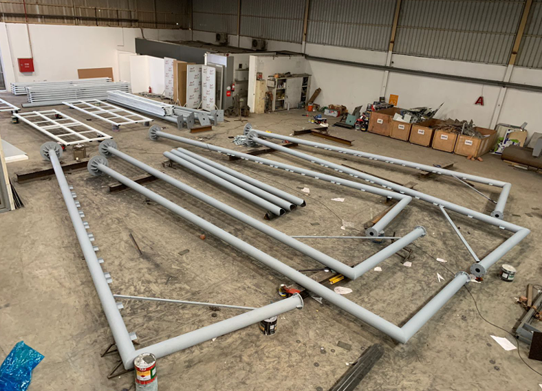 تجهيز كامل للهياكل قبل النقل والتركيب الميداني لضمان سرعة التنفيذ في الموقع
